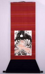 Verrückte Nudel / Crazy Nut, 2016, 50 x 20 cm, Tusche/Stoff/Holz ———————— 900,00 €